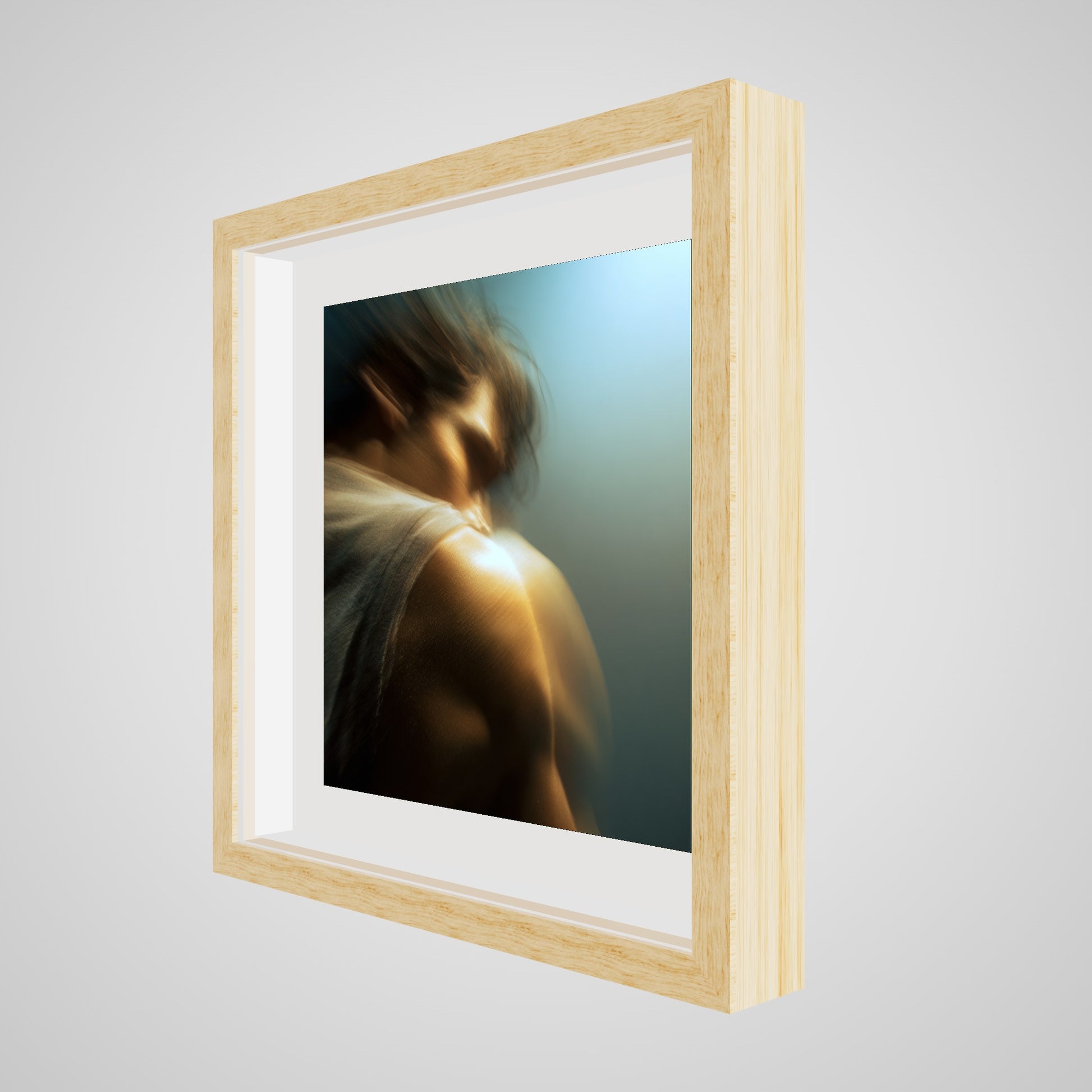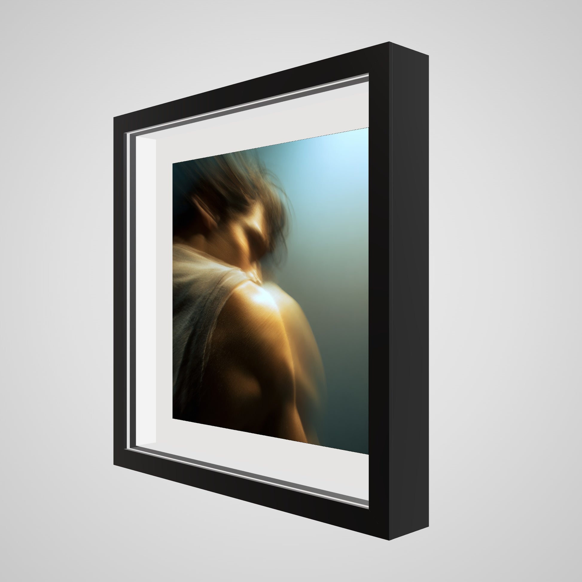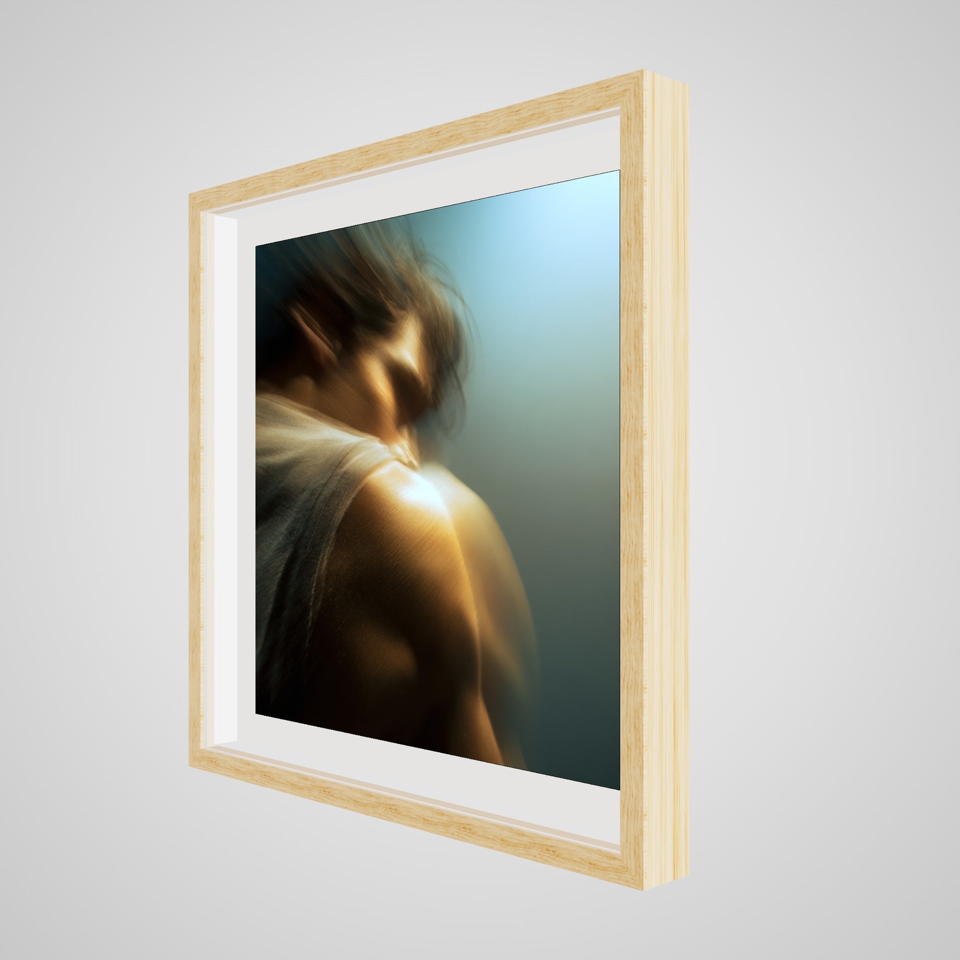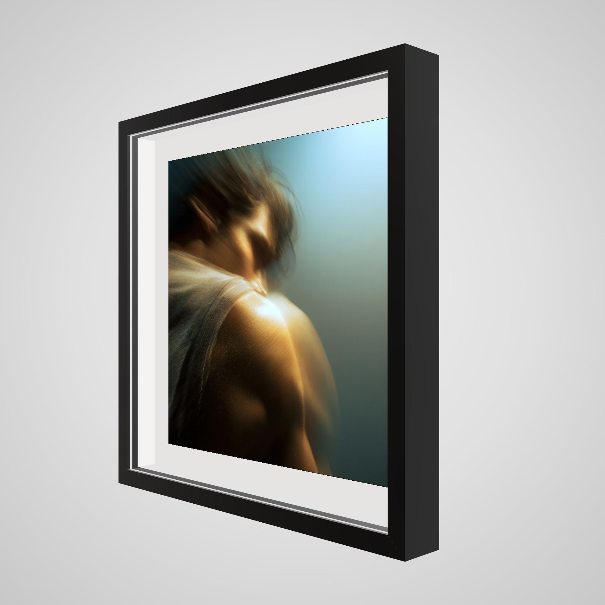 A male figure in motion, the work captures his form partially dissolved by blur and softened light. The image feels suspended between stillness and movement, presence and disappearance. Warm highlights trace shoulder and neck while the face drifts into abstraction, creating a dreamlike atmosphere that feels inward and emotional rather than performative. The work invites prolonged looking, rewarding quiet attention over immediate clarity.